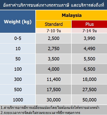 บริการขนส่งของ พัสดุ สินค้าไปมาเลเซีย (ทางรถ)