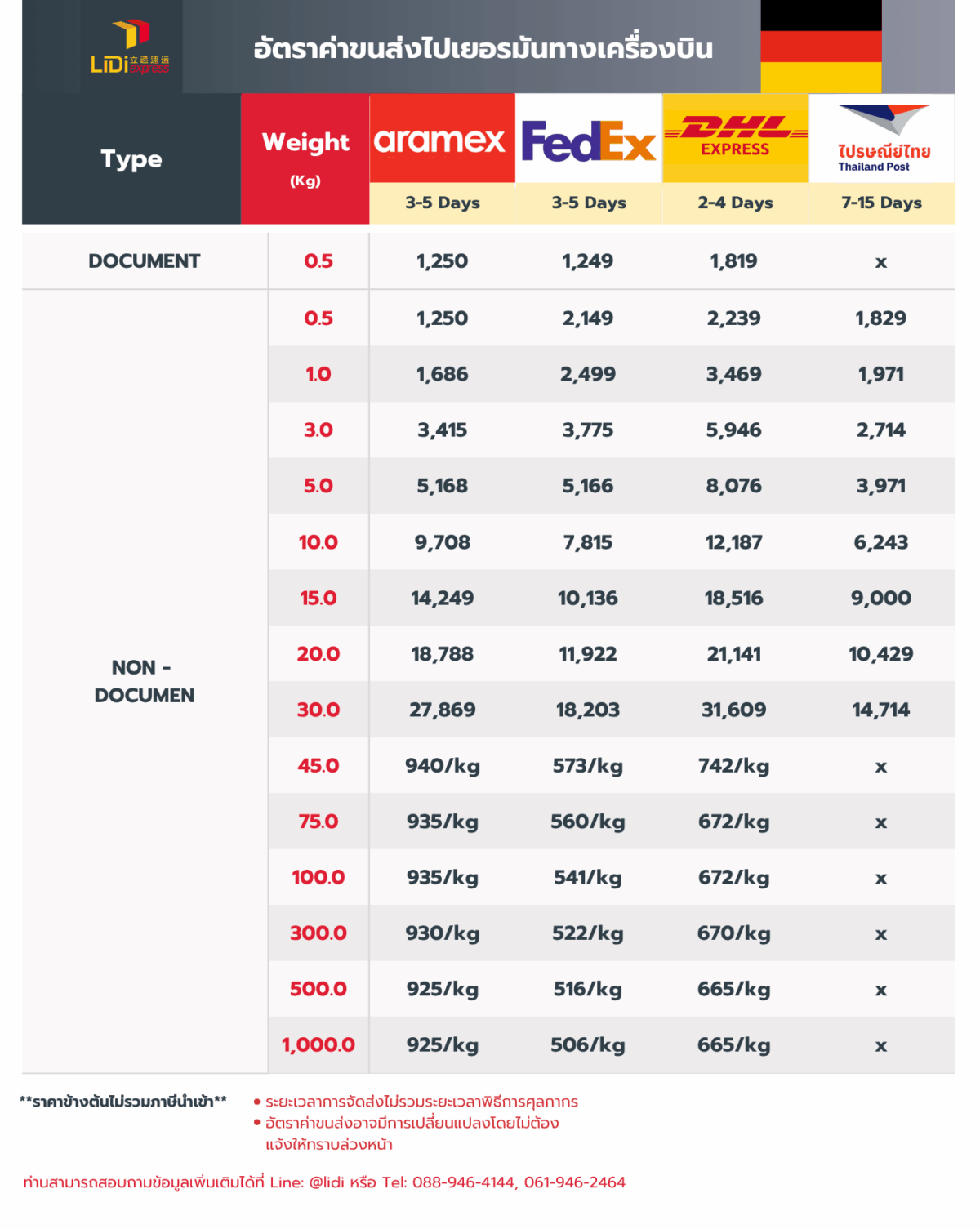 LIDI express บริการขนส่งสินค้า ของ พัสดุ eCommerce เอกสารด่วนไป เยอรมัน