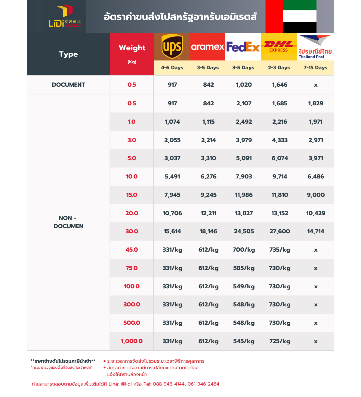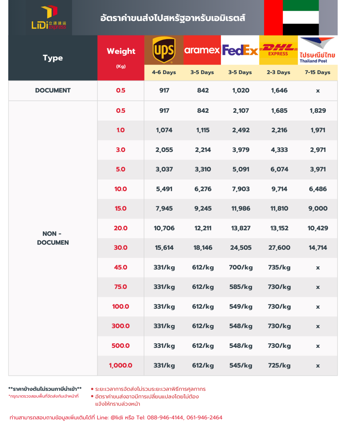 LIDI express บริการขนส่งสินค้า ของ พัสดุ eCommerce เอกสารด่วนไป United Arab Emirates